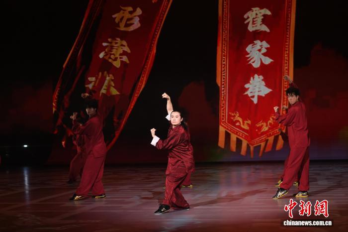 图为霍元甲玄孙女、霍氏练脚拳第5代代替性传启人霍静虹(中)正在落幕式上铺演。中新社记者 佟郁 摄